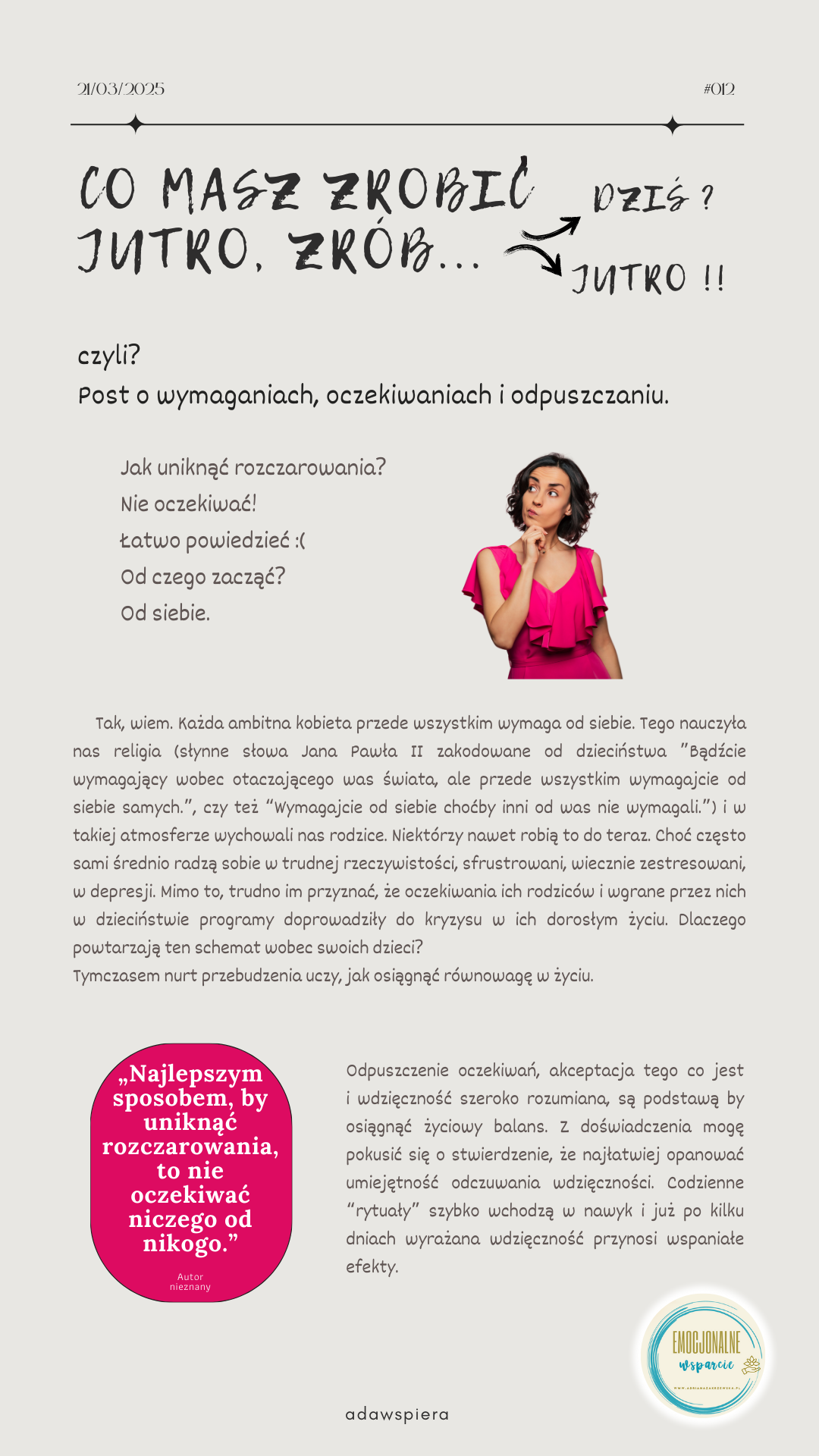 Post o wymaganiach, oczekiwaniach i odpuszczaniu